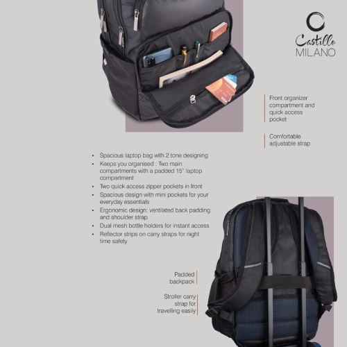 – Keeps you organised : Two main compartments with a padded 15” laptop compartment