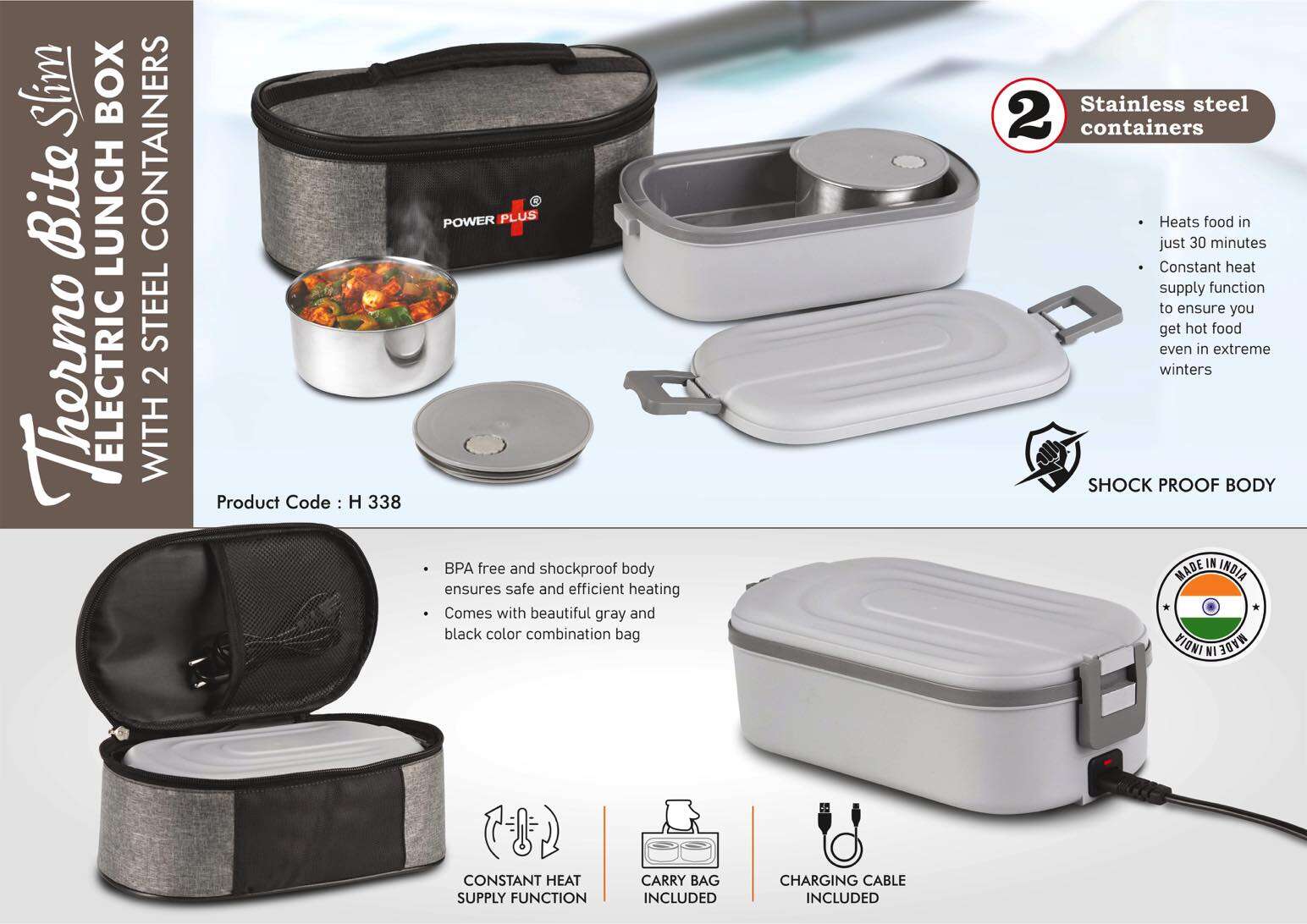 – ThermoBite Slim Electric Lunch Box with 2 steel containers