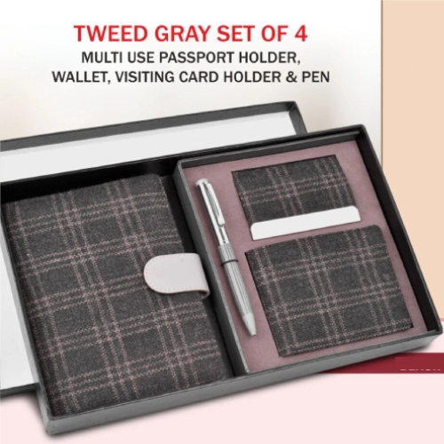 – Contains Visiting card holder, Metal pen, Wallet and Muti use passport holder